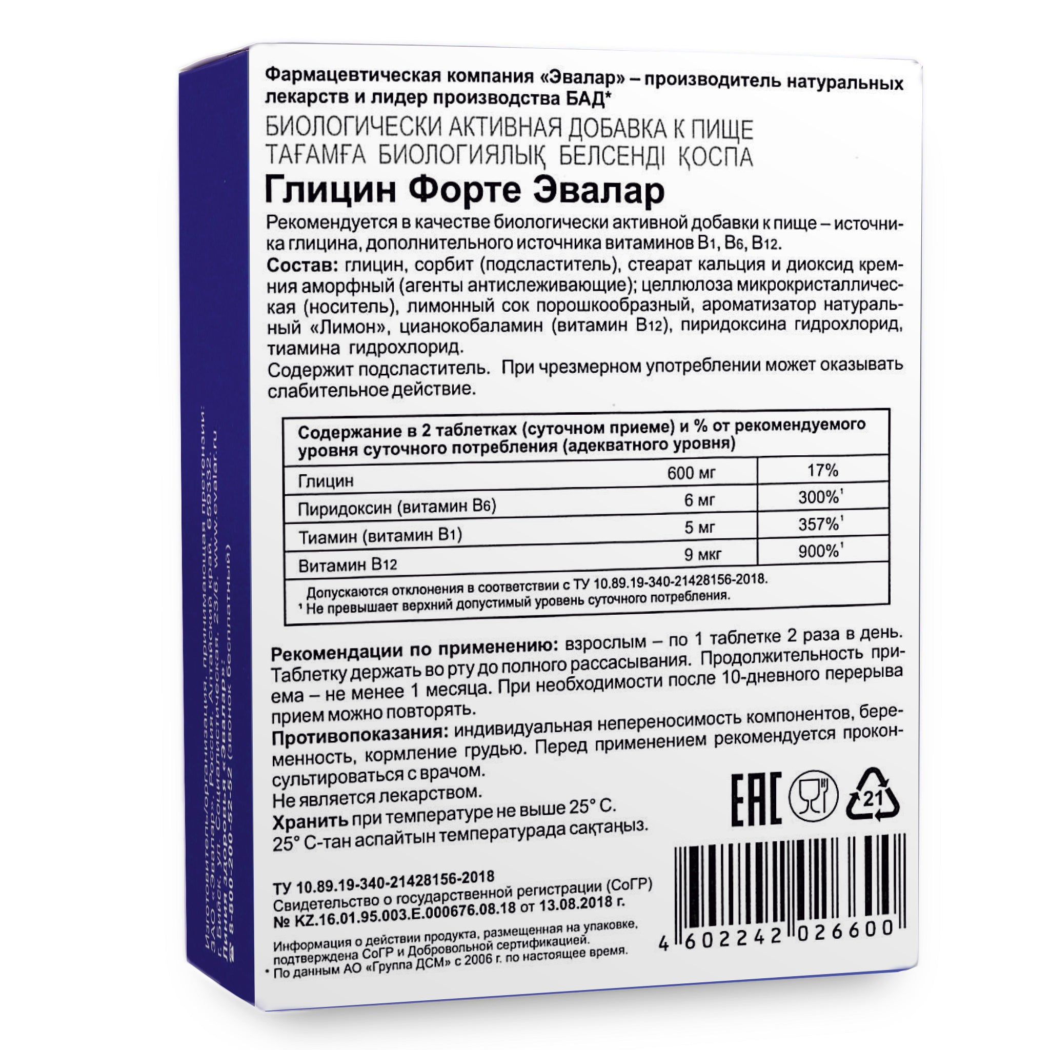 Glycine Forte Evalar 60 Tabs